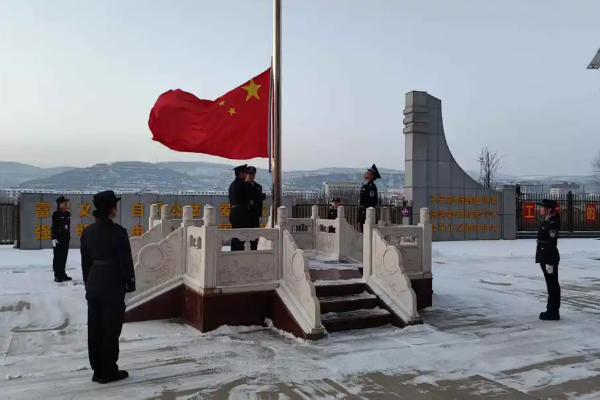 “正步走!”上午8时整,迎着熹微晨光,随着一声掷地有声的口令,升旗仪式正式开始。由司法警察组成的国旗护卫队警容严整、列队齐整,迈着整齐且坚定的步伐,走向国旗台。伴随雄壮的国歌声响起,擎旗手迎风振臂,鲜艳的五星红旗冉冉升起、迎风飘扬。