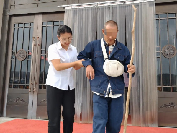 2025年9月,拄着拐棍的老姚第一次走进彭阳法院。刚到门口,导诉员便立刻迎了上去:“大爷,您好,请问需要什么帮助?”