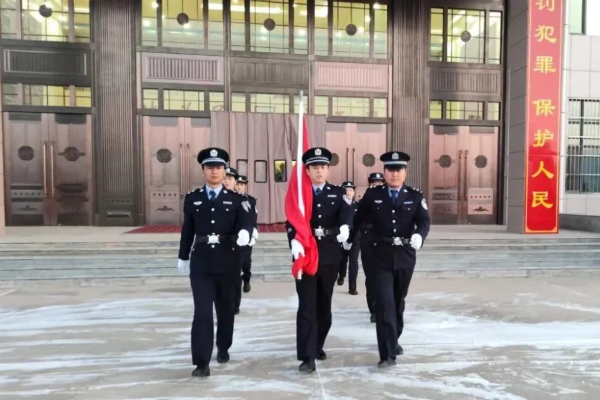 清晨,熹微晨光穿透薄雾,洒在彭阳法院的广场上。“正步走!”随着一声铿锵有力的口令,司法警察大队全体干警身着藏蓝警服,迈着坚定有力的步伐护卫国旗走向升旗台。伴随雄壮的国歌声响起,擎旗手迎风振臂,鲜艳的五星红旗冉冉升起、迎风飘扬,干警们昂首肃立。凛冽寒风中,警徽与国旗交相辉映;激昂旋律里,初心与使命共鸣。这场庄严的升旗仪式,不仅拉开了新一年司法警务工作的序幕,更为全体司法警察注入了踔厉奋发的前行力量。