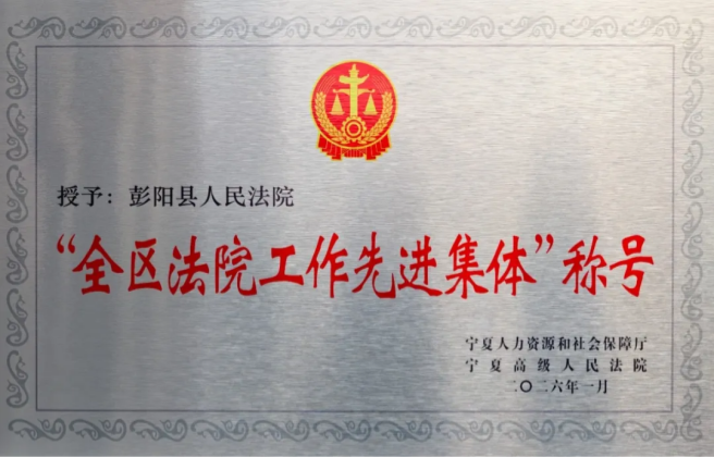 捷报传佳讯,殊荣励初心!1月27日,全区法院院长会议隆重召开,会上对工作先进集体予以隆重表彰,彭阳法院凭借扎实过硬的工作实绩、司法为民的责任担当,获评“全区法院工作先进集体”,这份荣誉是对彭阳法院坚守司法为民初心、服务发展大局、深化司法改革、主动担当履职的全面认可,更是全院干警凝心聚力、拼搏实干的丰硕成果。